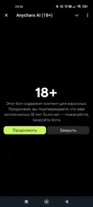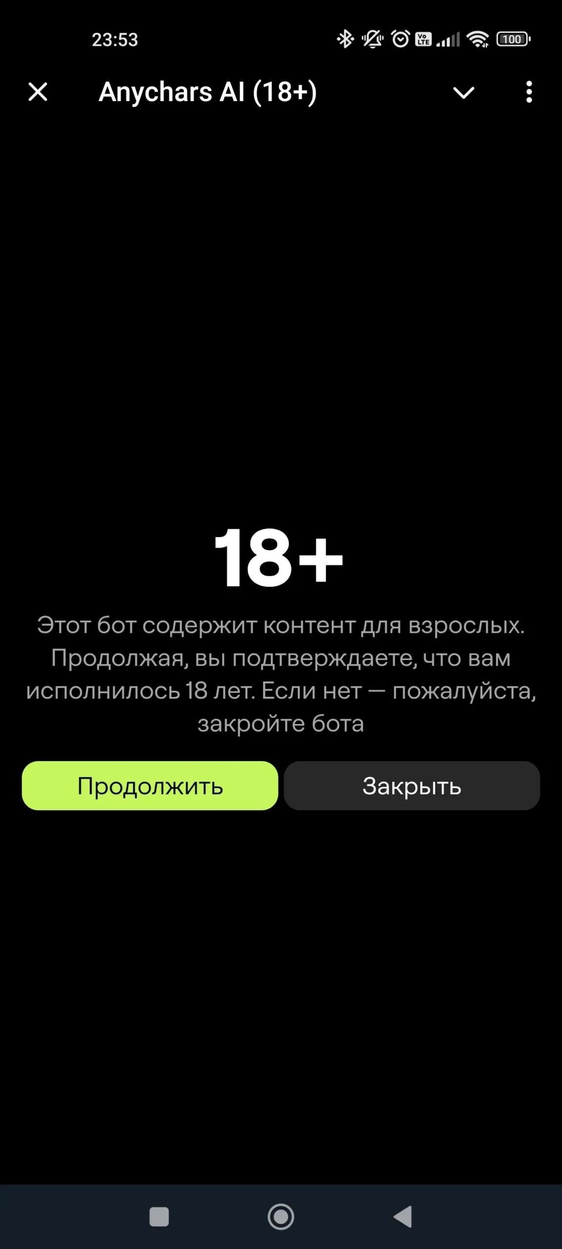 Рабочая ссылка на AnyChars AI (18+) в Telegram. На данный момент у бота 296 548 активных пользователей в месяц. Если приложение не работает или описание не соответствует действительности, напишите нам.