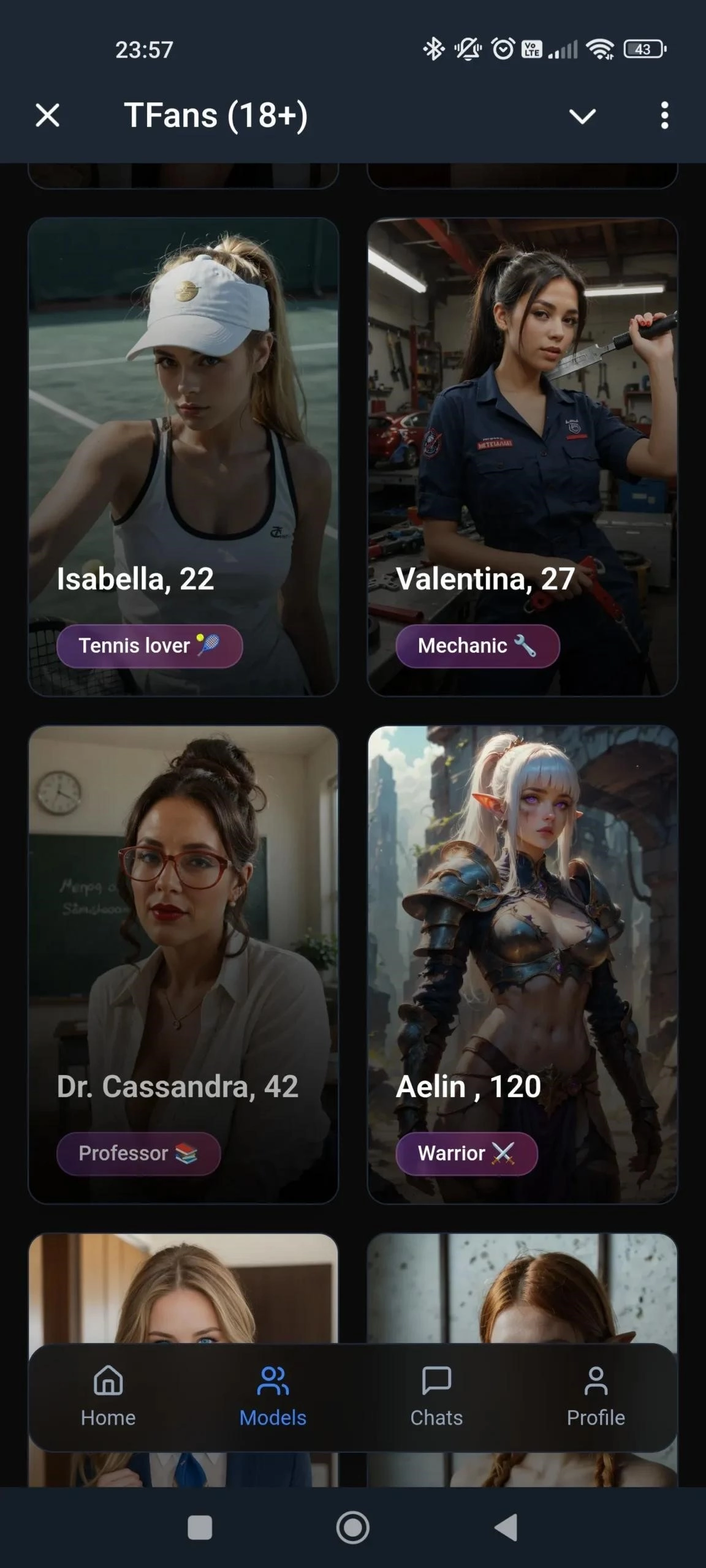TFans - мини-приложение для взрослых с интерактивными ИИ-мобами. Пользователь выбирает героя, задаёт тон общения и получает адаптивные ответы, поддерживающие роль и историю. Механики прогресса и поощрений удерживают внимание и мотивируют возвращаться.