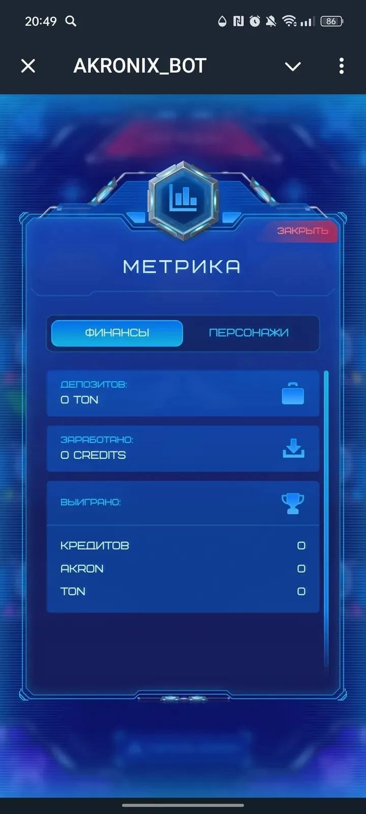 AKRONIX_BOT - мини-приложение, которое объединяет механики NFT и play-to-earn в одном интерфейсе. Пользователь развивает коллекцию мобов, участвует в активностях и получает вознаграждения за прогресс, не покидая привычного чата.