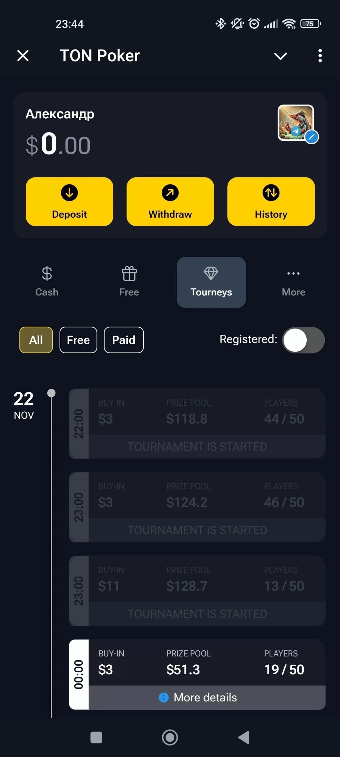 Аккаунт привязывается к профилю пользователя, что упрощает вход с разных устройств и ускоряет восстановление доступа. Уведомления помогают не пропустить старт турнира или ход в активной раздаче.