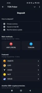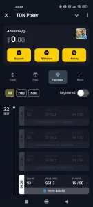 TON Poker - мини-приложение для игры в покер прямо в привычном интерфейсе, с быстрыми столами, турнирами и приватными комнатами. Подходит как новичкам, так и опытным пользователям: есть обучающие подсказки, гибкие лимиты и быстрые сессии.