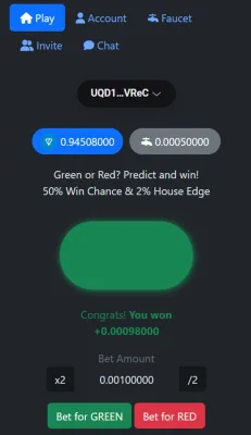 GreenOrRed - мини-приложение в Telegram с простыми раундами удачи на базе TON. Суть игры - предсказать цвет следующего прямоугольника и мгновенно узнать результат. Формат Web3 обеспечивает быстрые расчёты, прозрачность механики и лёгкий вход прямо в чате без установки отдельных приложений.
