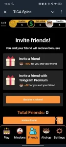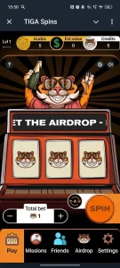 TIGA Spins - игровое мини-приложение c механикой спинов, миссиями и прогрессом, рассчитанное на аудиторию крипто-проектов. Пользователи выполняют задания, зарабатывают внутриигровые баллы и повышают свой вклад в будущие роздачи и активности. Интерфейс максимально простой: быстрый старт, понятные цели и акцент на ежедневные действия и приглашения друзей.