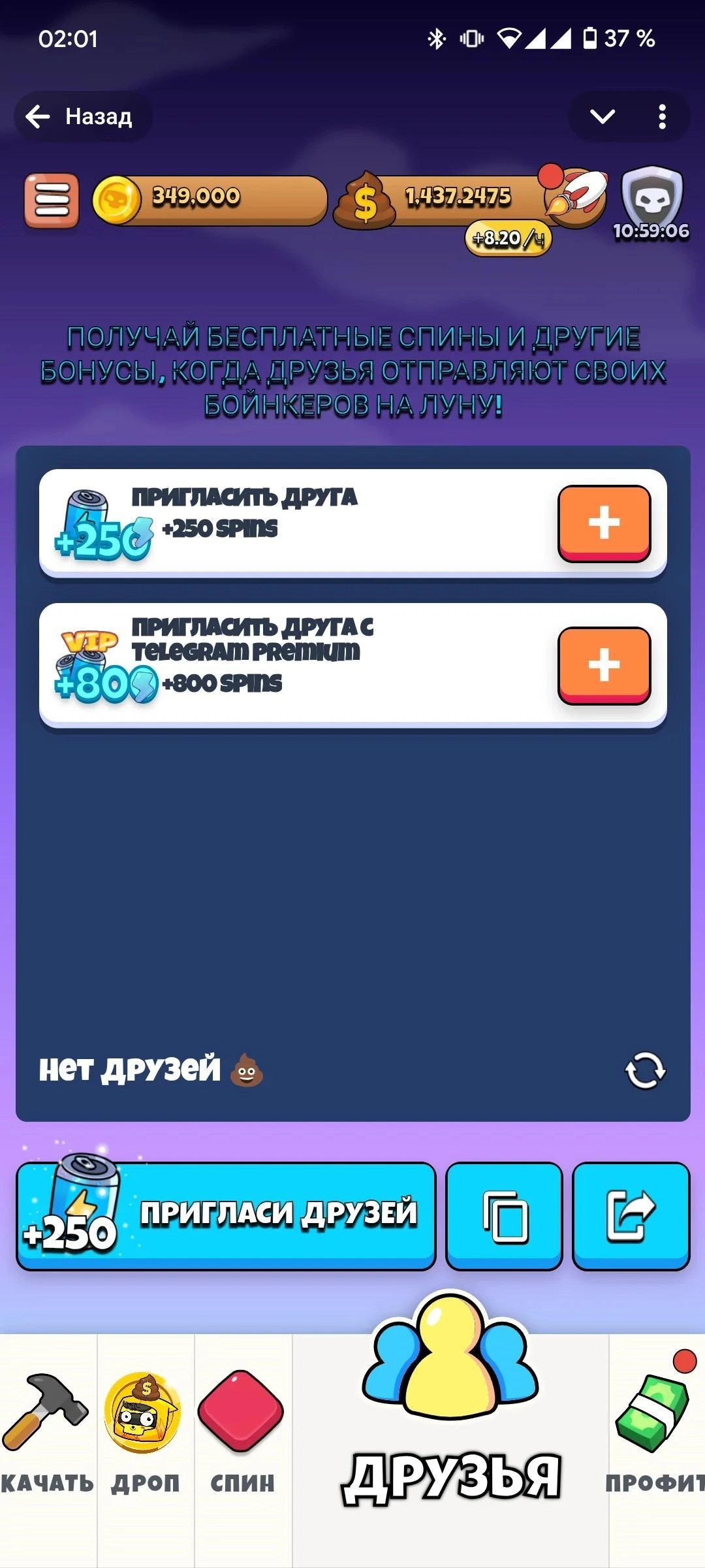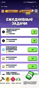 - Социальные: пригласить друзей, подписки на партнёрские каналы.