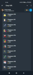 Easy Gift - мини-приложение с кейсами за звёзды: открывайте боксы и получайте коллекционные цифровые подарки, часть из которых можно пересылать или продавать.