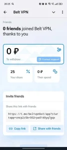 Рабочая ссылка на Belt VPN в Telegram. Количество активных юзеров у бота скрыто. Если приложение не работает или описание не соответствует действительности, напишите нам.